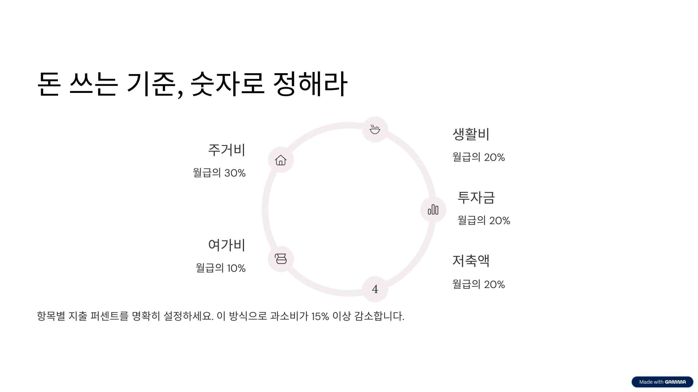 예: 매달 고정비는 40% 이내, 유동비는 20% 이내로 제한