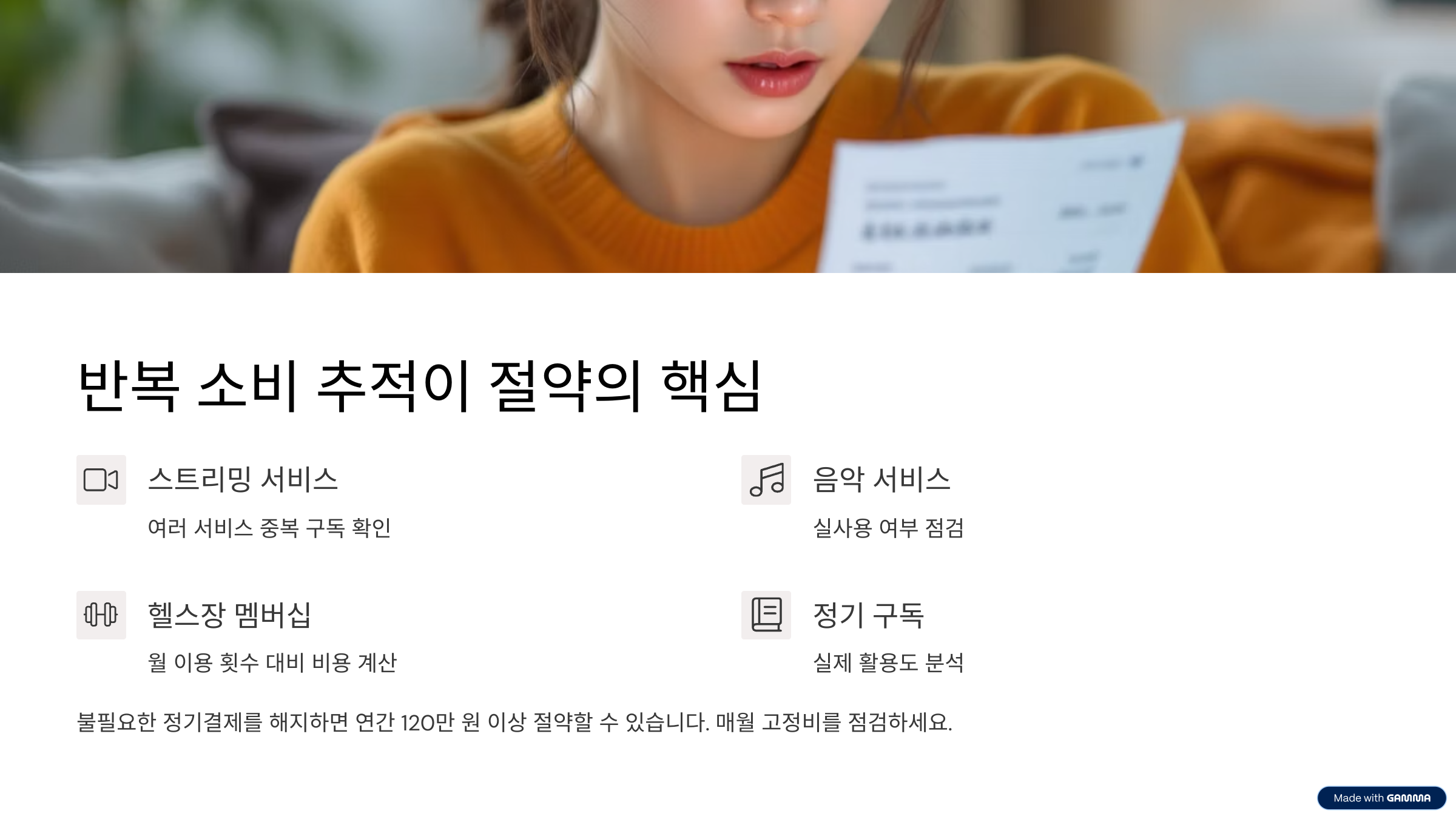 넷플릭스, 헬스장, 휴대폰 요금 등 반복적인 지출을 분석하고